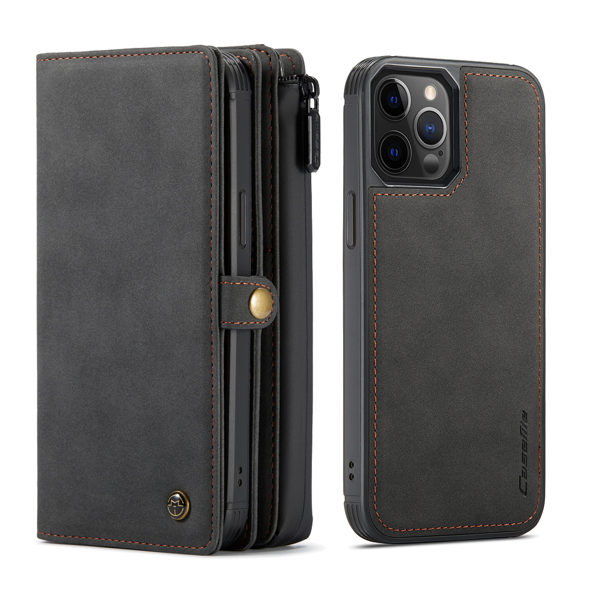 / CaseMe 018 Series läderfodral till iPhone 12/12 Pro, svart