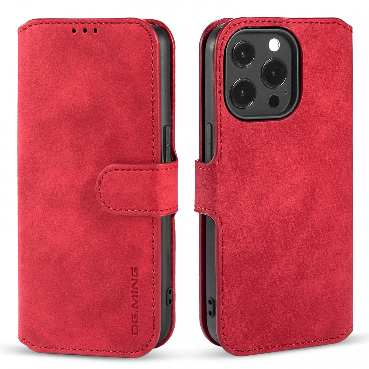 / DG.MING Retro Style läderfodral ställ, iPhone 13 Pro Max, röd