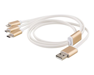 EPZI Multiladdare, USB-C, Lightning, Micro USB, USB-A, 1m, vit/guld