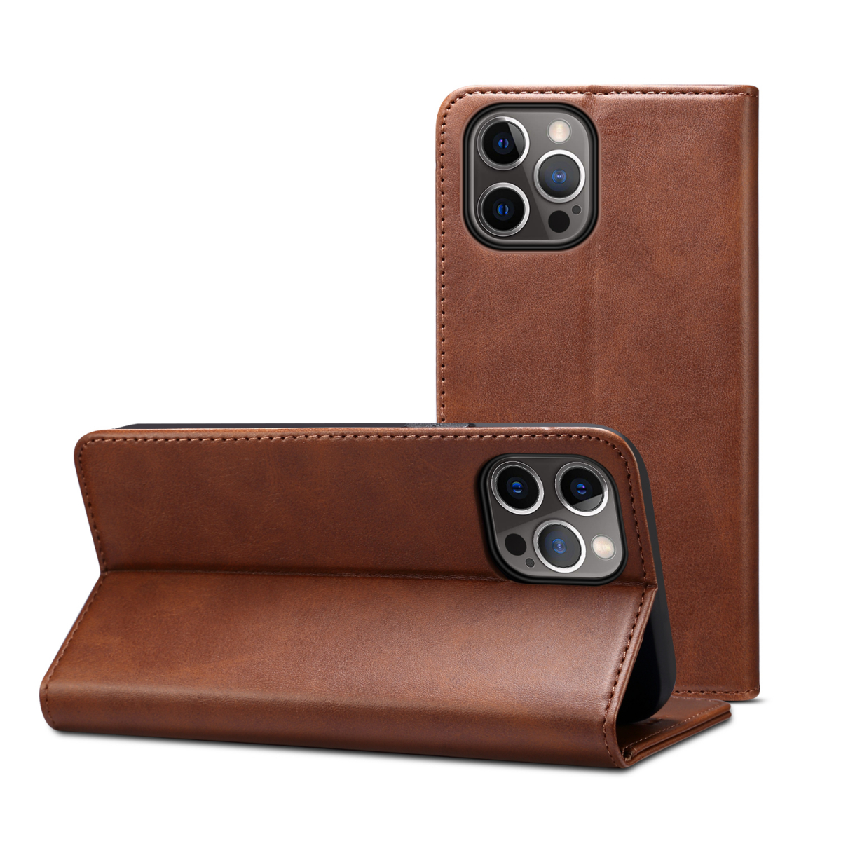 / Läderfodral med kortplats och ställ, iPhone 12/12 Pro, mörkbrun
