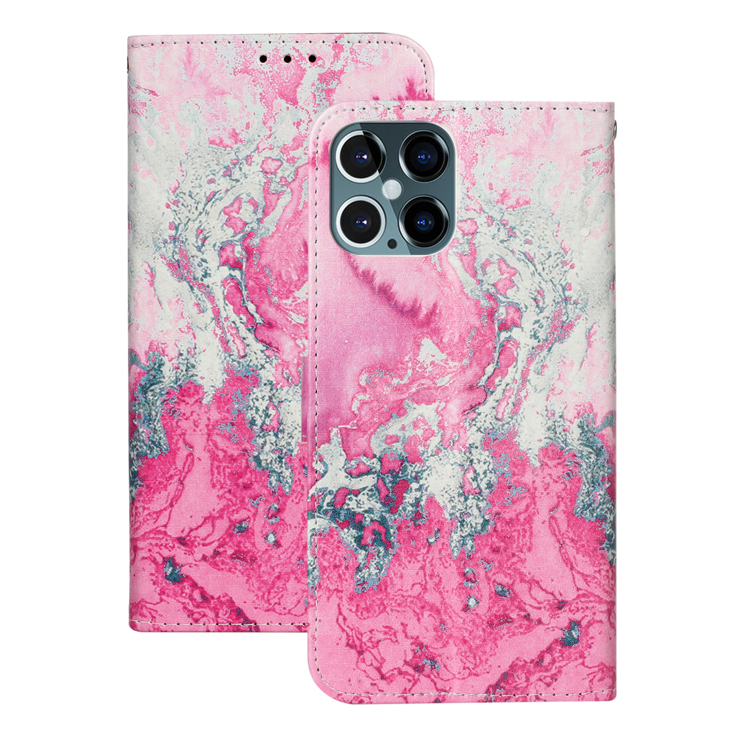 Marmorerat läderfodral, iPhone 12 Pro Max, mörkrosa/grå