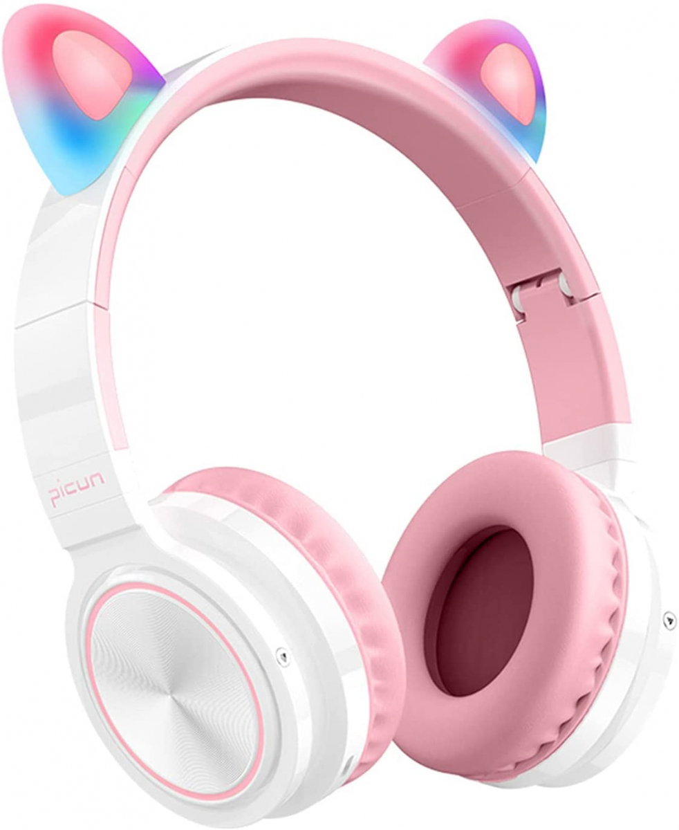 Picun Lucky Cat Trådlösa barnhörlurar med LED-öron, rosa